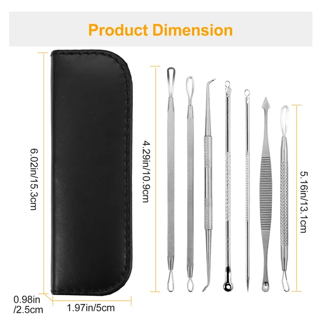 *Useful Face Skin Care Kit*:Includes 7 blemish extractor tools with distinct double-end to remove blackheads,acne and various blemishes. Keep your face skin clean and smooth without the need for treatment in a beauty salon.