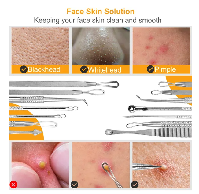 *Precaution*:We recommend using the tools on pimples that is completely matured and please remember to disinfect it before and after use with alcohol in order to prevent growing bacterium.